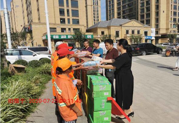 7月25日,中啟膠建集團膠州分公司干部職工來到莊里頭街,慰問一線工作的環衛工人,為他們送去夏日的“清涼”,并現場向群眾發放垃圾分類宣傳單。