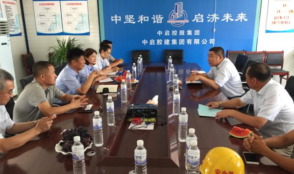 2017年7月14日上午,青島膠東國際機場建設指揮部紀委書記、工會主席戴建立一行11人來到青島新機場項目部,開展黨群工作交流及對現場施工管理人員關懷慰問。中啟膠建集團常務副總馬振聲及項目部負責人薛長青參加了座談會。