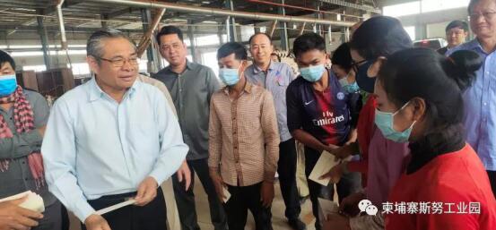 座談結(jié)束后,副首相一行參觀了園區(qū)建設(shè)情況和入園木業(yè)公司、電纜公司等,并慰問柬埔寨工人。